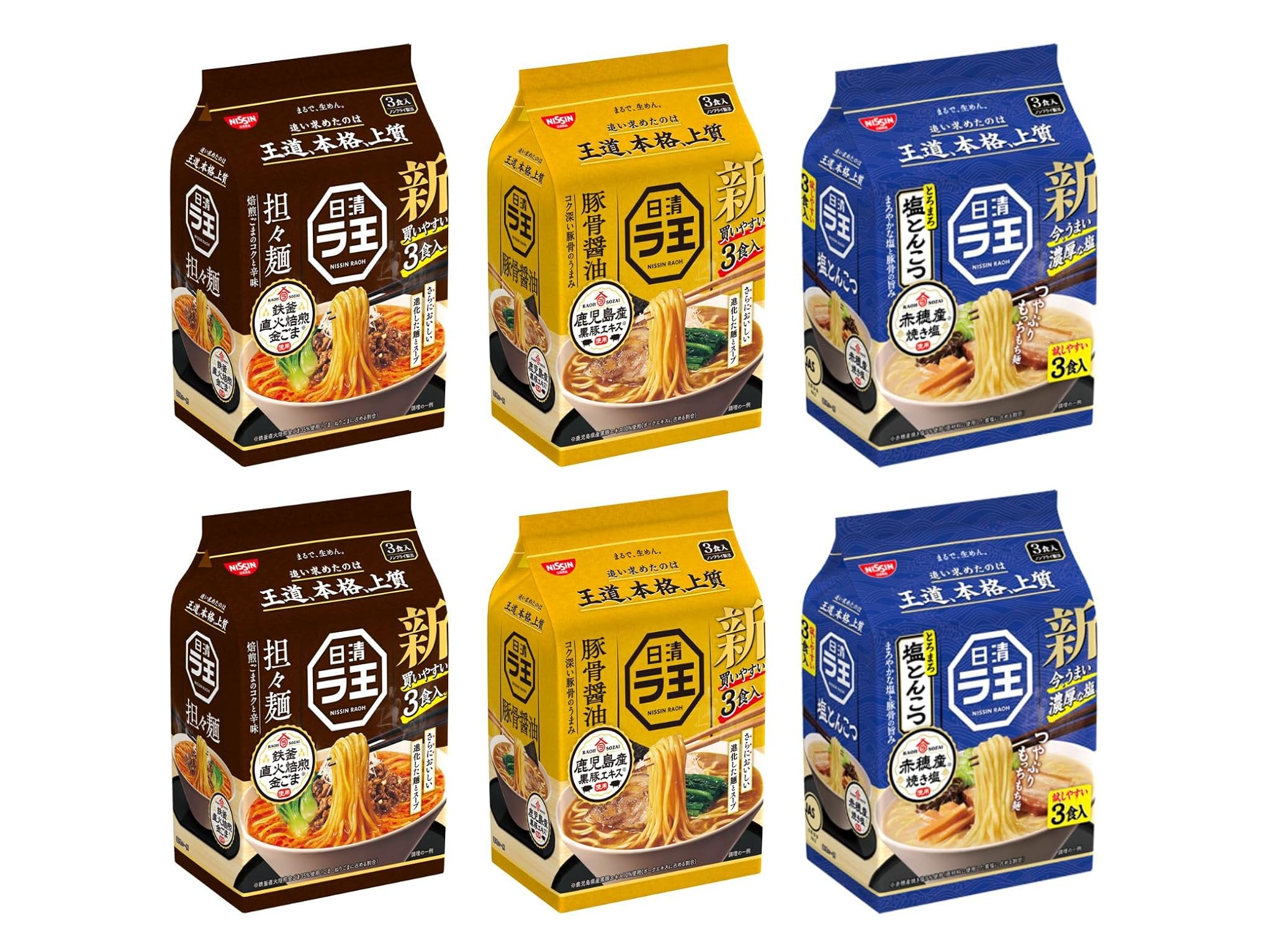 「日清ラ王」の最大の特徴は、デュラム粉を配合したコシのある麺。まるで生麺のように、ツルツルとした喉越しと、噛むほどに広がる小麦の風味は、一度食べたらやみつきになります。豚骨醤油、塩とんこつ、担々麺の3つの味が楽しめるセットなら、飽きることなく毎日楽しめます。